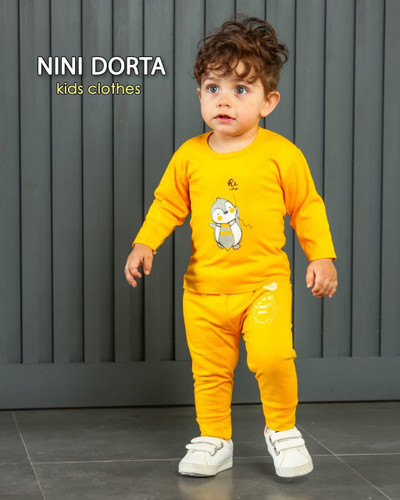ناموجود ست بلوز و شلوار نوزادی و بچگانه سایز2 طرح پنگوئن رنگ خردلی