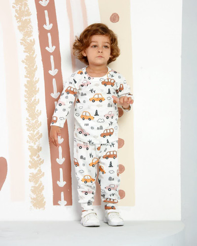 ست راحتی بچگانه نخ پنبه سایز 4 طرح ماشینی زمینه سفید