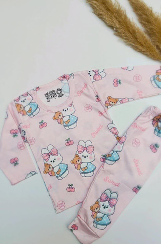 ست راحتی بچگانه نخ پنبه سایز4 طرح خرگوش رنگ صورتی