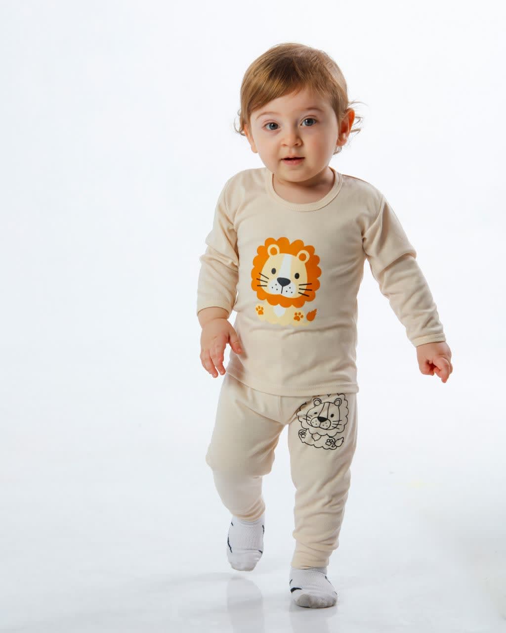 ست بلوز شلوار نوزادی و بچگانه سایز 1 طرح شیر رنگ کرمی