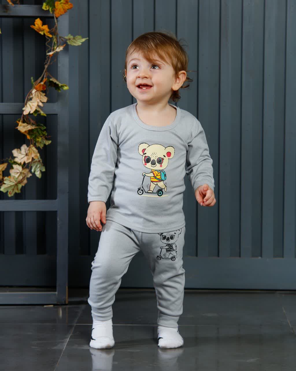 ست بلوز وشلوار نوزادی و بچگانه سایز2 طرح خرس رنگ طوسی