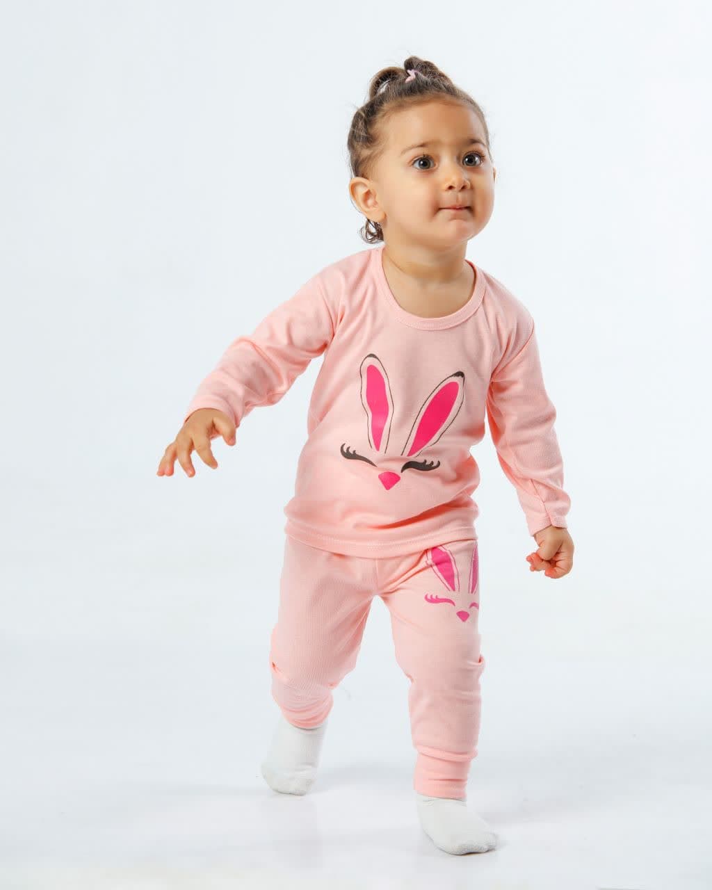 ست راحتی بچگانه نخ پنبه سایز 6 طرح خرگوش زمینه صورتی